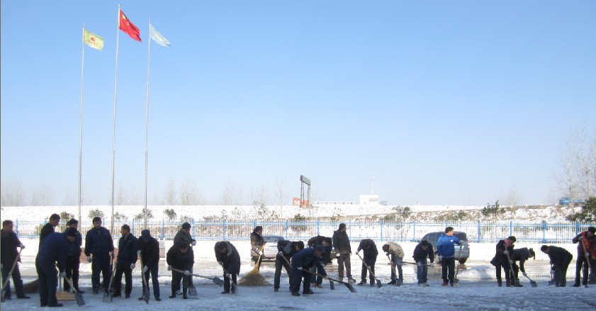 12月30日,安徽華能集團(tuán)青年志愿者何俊文、肖尚東等行數(shù)十人,利用午飯后的休息時間,冒著刺骨的寒風(fēng),拿著鐵鍬、掃把等工具,自發(fā)地來到集團(tuán)辦公樓前,給廣場、道路掃雪除冰。志愿者何俊文在除冰時不慎摔倒,手被堅硬的冰塊劃破了皮,流出了血,但他爬起來后又繼續(xù)除冰。在志愿者的示范帶動下,其他部、室員工也紛紛走出辦公室,拿起鐵揪、掃把,加入了掃雪、除冰的行列。